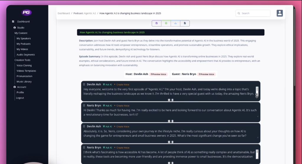 • Generates 10-15 minute episodes that sound completely authentic