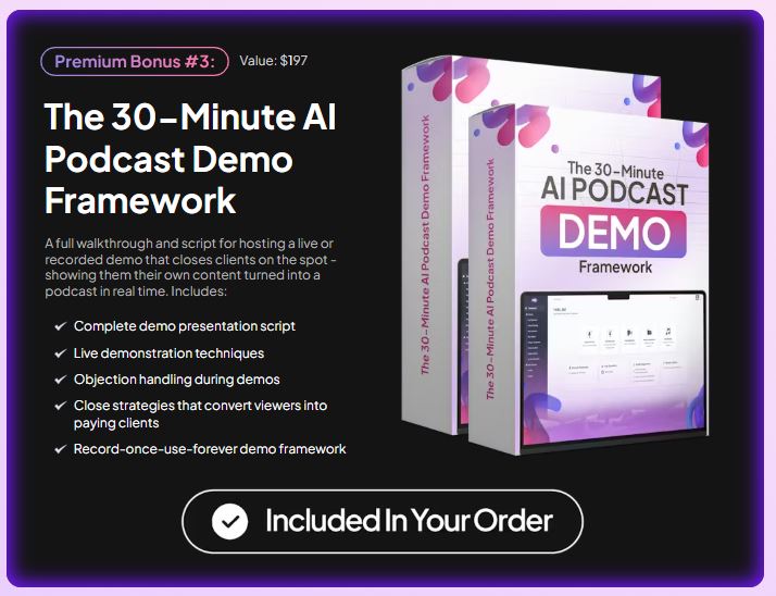 You can use real voice samples from clients and use them as a full-fledged podcast without recording. It also includes templates for your different podcast styles, and you can publish those podcasts on social media platforms like spotify and Apple Podcasts.