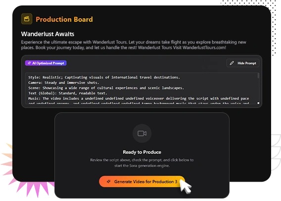 - Visual Production Storyboard-Plan like a pro. See every scene, hook, and transition on a crystal-clear visual board before you render, ensuring your video flows perfectly.