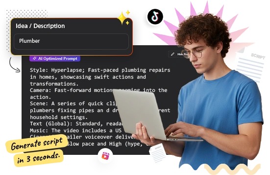 - Precision Script Control-You are the boss. Edit every word of the hook, dialogue, and Call-to-Action. The AI executes your exact commands for maximum conversion.